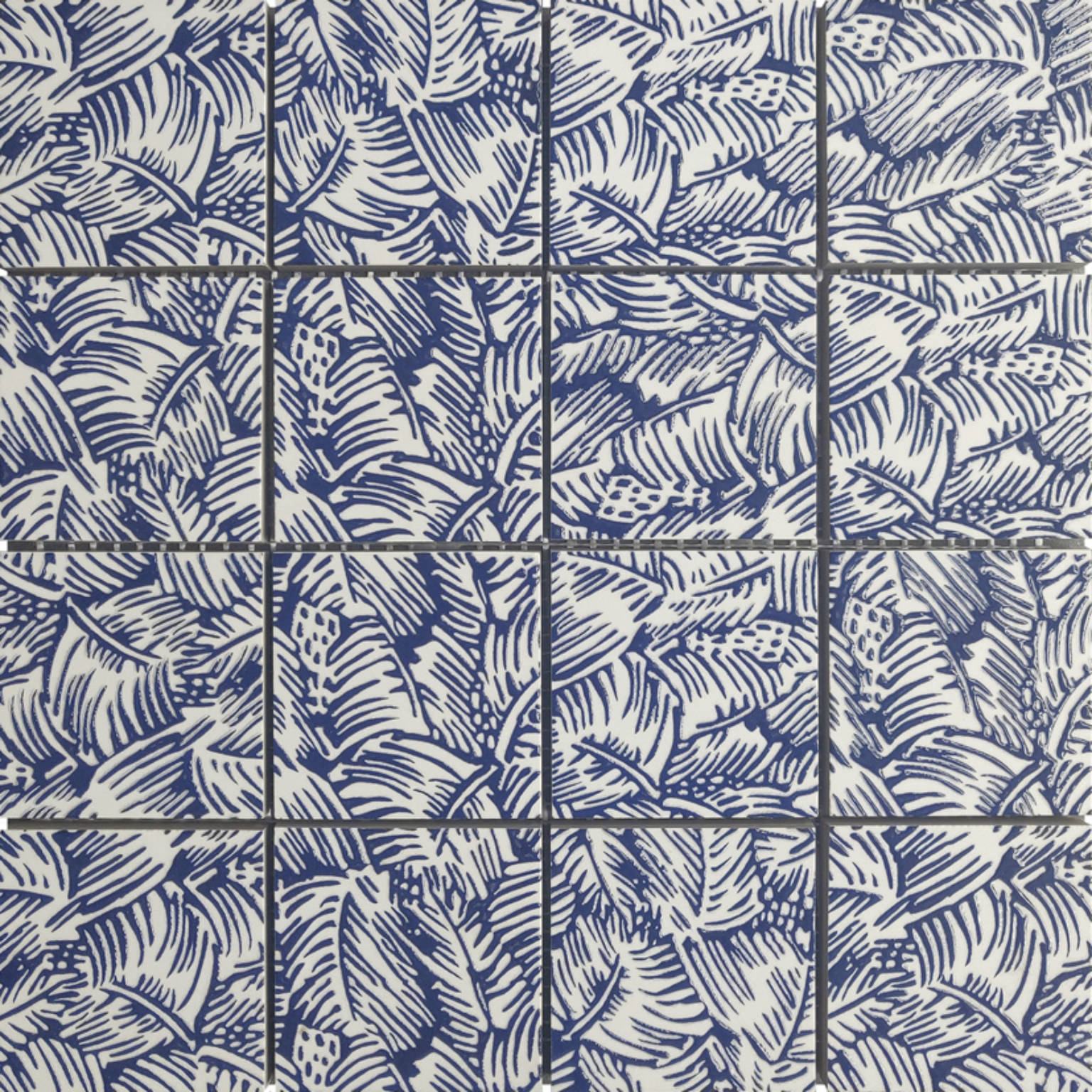 Palmtree Glazed Ceramic 3″X3″ Cobalt Blue & White Mosaic